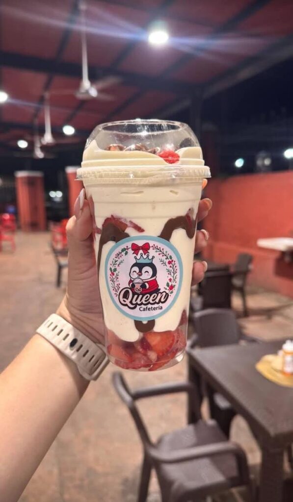 DISFRUTA DE NUESTRAS DELICISAS FRESAS CON CREMA, QUEEN’S ICE VAINILLA Y CHOCOLATE, Y GALLETAS DE CHISPAS